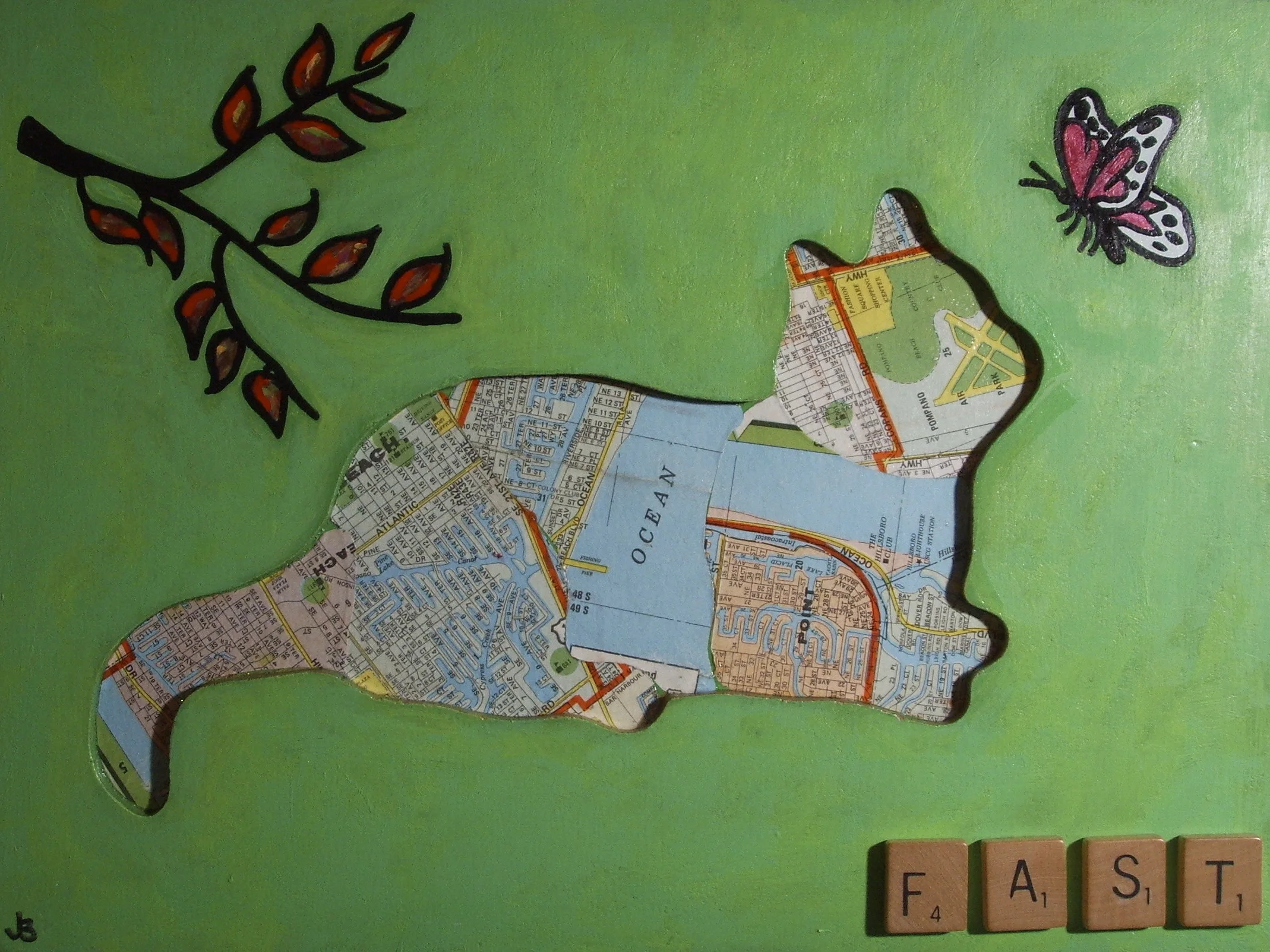 A collection of mixed media paintings, collages, and drawings by Jacinta Bunnell. Working from a giant collection of found paper and ephemera gathered since she was a child, this collection represents many different styles of work completed in the last decade. Contact Jacinta Bunnell for availability and commissions.